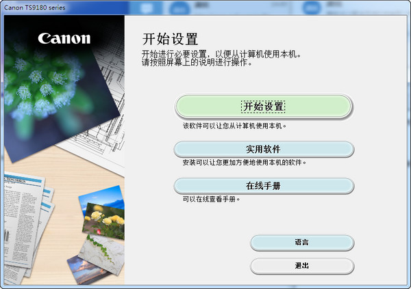 1、佳能TS9180一体机驱动的安装还是很人性化的,没有什么复杂的操作,只需在连接打印机后,打开驱动安装程序,点击【开始设置】按钮。