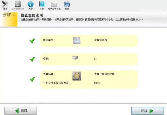 检查选项,查看是否存在问题,没有问题后点击继续。