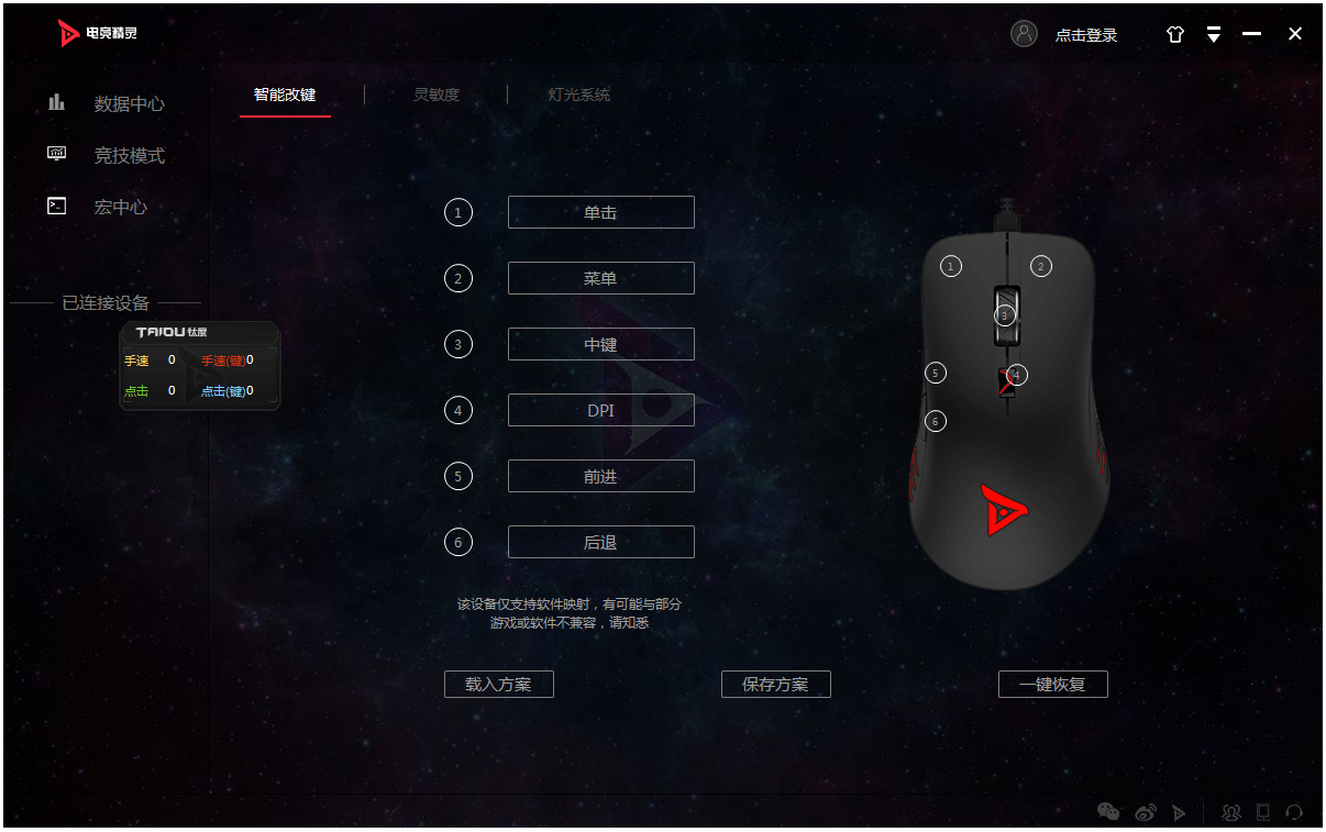 钛度电竞精灵是一款专属驱动产品,为用户提供了智能改键、灵敏度调节、灯光系统等功能,不仅能够改变鼠标、键盘的键位功能,还能自定义宏命令,是游戏玩家必备的操作神器,欢迎大家下载使用。