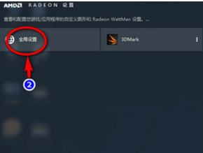 2、然后进入到二级设置界面,在里面我们点击全局设置,如果仅仅是想在个别程序或者游戏运行的时候才实现超频的话,可以点击游戏或软件图标单独设置。