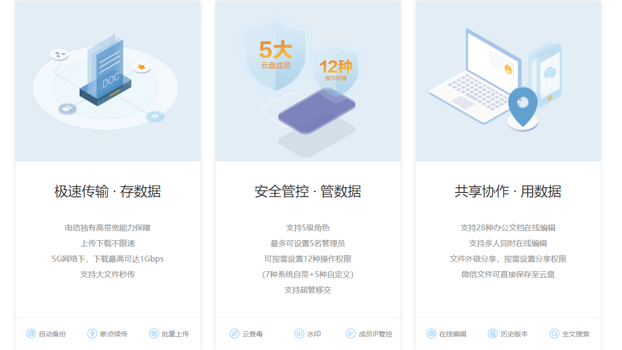 更安全:文件加密备份到天翼云存储,不怕硬盘损坏丢文件。