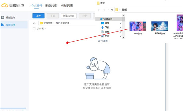1. 打开软件中的任意目录,把需要上传的文件直接拖动到该目录进行上传。