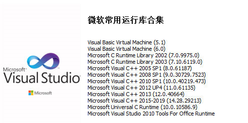 微软常用运行库合集是采用microsoft visual studio 20xx编写的软件必须使用的公用dll运行库,是最全最新的运行库集合,可以说是程序的字典文件。一些使用精简的系统是没有运行库,这时候就需要下载这个运行库合集。
