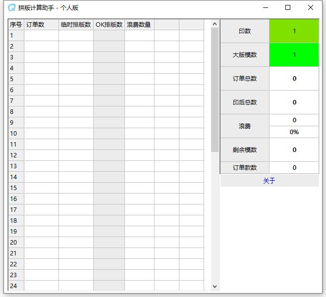 拼版计算助手是一款主要应用于印刷行业,比如多款不同数量拼在一张版上的计算每款排版个数。在印刷工艺中,拼版是印刷前的一道重要工序,其作用不仅贯穿到整个印刷经营过程,而且也是产品计价的重要依据。