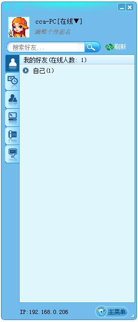 1、好友管理:不需要添加用户 不需要注册用户只需要复制到对方电脑,就可开始聊天