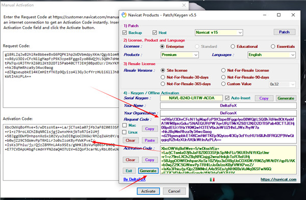 5、下一个界面里会有一大段的”请求码“,复制下来粘贴到注册机里,并点击最下方的”Generate“按钮,会生成注册码,复制回去免费即可。