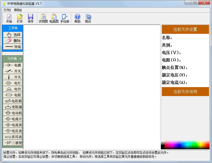 中学电路虚拟实验室能像真实实验一样随意连接试验元件和导线,还可画标准电路图,是中学电路教学与学习的辅助工具,能增强中学生学习兴趣和效率,让中学生在实验中轻松学好电路知识,本软件还可用于幼儿启蒙教育或作益智游戏。