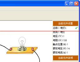 在设置面板元件名称后常有一“√”,它代表当前元件各项参数可视,如果双击“√”,它将变为“?”,当前元件参数也变成“未知”,用于模拟未知参数的元件。如果双击“?”,它又会变成“√”,当前元件的各项参数又显现出来。只有开关、双量程电表参数不能隐藏。