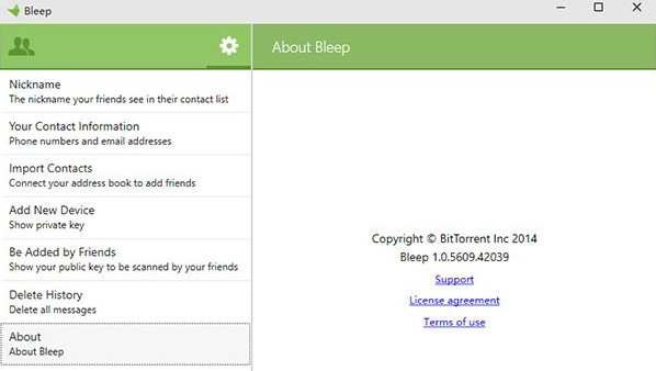 Bleep是BitTorrent旗下的一款聊天应用,这款Bleep应用和一般聊天应用的区别在于安全性较高,因为用户聊天内容并不上传任何服务器,并且聊天全程加密。