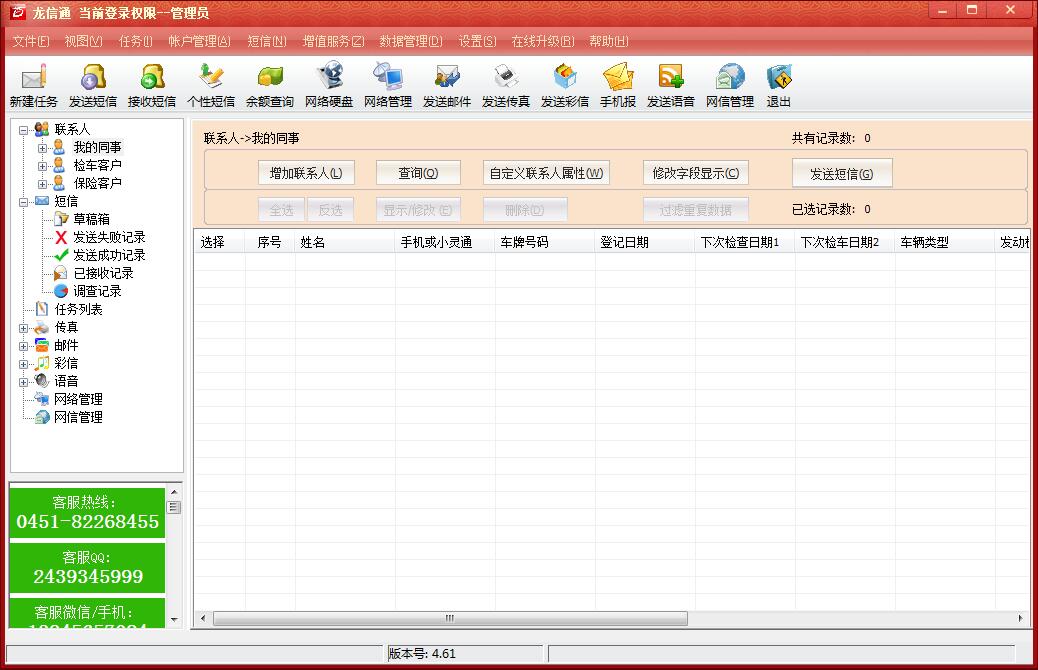 龙信通机动车检测站管理系统,为机动车检测站提供客户关系管理、短信发送管理、检车短信提醒管理等功能,通过龙信通机动车检测站管理系统,将客户按照月份进行分组,可实现一键发送检车提醒短信。