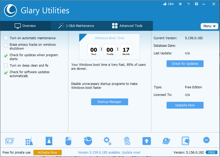 Glary Utilities 是一款免费系统清理与优化工具,是一系列系统工具集合,能够修理、加速、增强和保护你的PC。它允许你清理系统垃圾文件,无效的注册表键值,上网记录等。支持简体中文等多语系界面。在安装时会自动选择简体中文界面,还可免费在线升级。