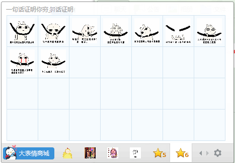 一句话证明你很穷表情包是一款非常有趣的QQ表情包,用户使用该款表情包能够获得一组非常搞笑的表情包合集,每款表情都极具恶搞,如果用一句话证明你很穷,你会想到什么呢?