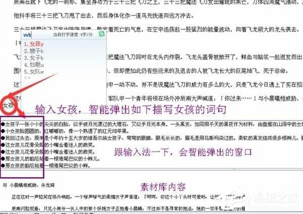 3、在正文中输入文字时,在正文下方会智能自动弹出刚才输入文字的词语和句子,方便作者选用;