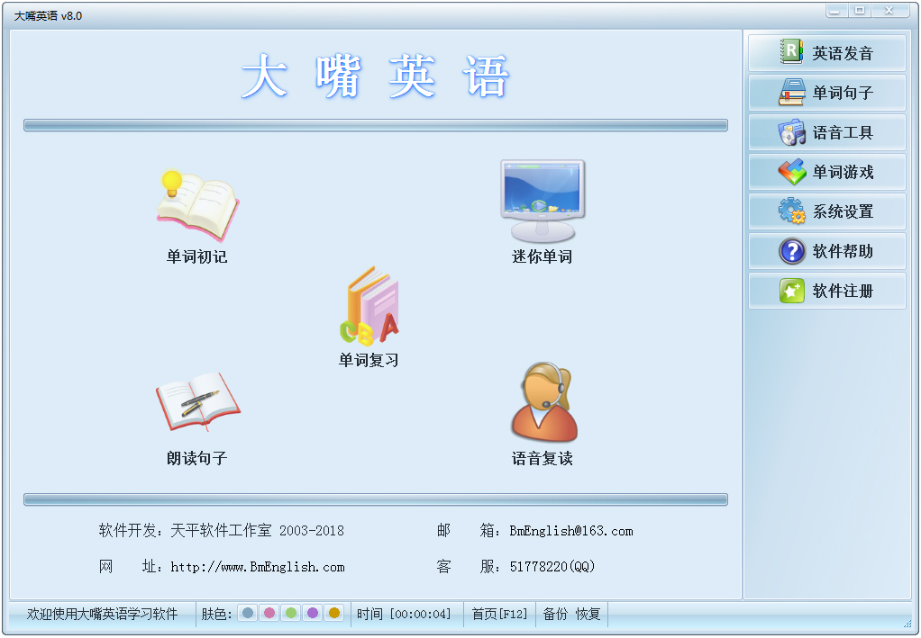3、并以采用全球先进的英语、汉语语音朗读技术,使您在使用电脑进行工作、学习或娱乐的同时,就能不知不觉、轻轻松松地掌握各类日常英语会话及常用英语词汇。