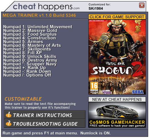 幕府将军2修改器是一款非常好用的游戏修改器,幕府将军2修改器拥有无限移动、999999黄金、999999食物、目标建筑一季完成、目标部队一季完成、目标单位经验全满等功能,玩家只需按相应的热键即可使用这些功能,有需要的朋友快来下载!