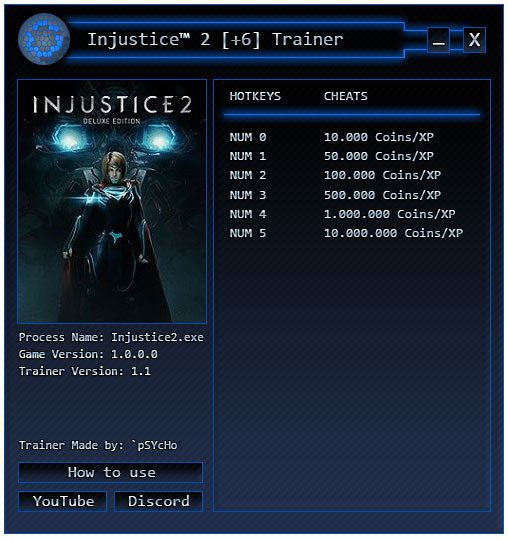 不义联盟2六项修改器是款专门针对《不义联盟2》这个游戏的修改工具。它针对的PC版的游戏,它能将游戏的数据进行修改,让你得到超多的金钱,称霸整个游戏。