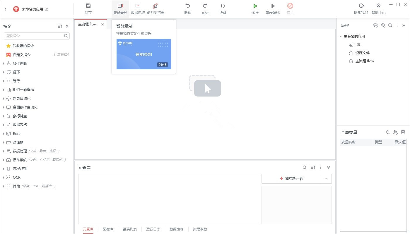 影刀是一款自动化软件,用户通过该软件可以设计出各种自动化软件工作方案,让软件帮助你自动完成重复的工作,有效提高工作效率,适合需要批量执行任务的人员使用。影刀RPA支持多种自动化方案,包括网页自动化、桌面软件自动化、鼠标键盘、数据表格等等。