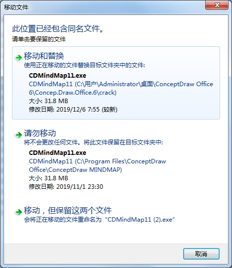 7、将破解文件夹中的文件分别复制到每个独立程序的安装目录中,点击替换目标中的文件,默认路径: