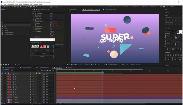 Super Morphings脚本是After Effects中最简单的形状变形工具!将一个对象转换为另一个对象。因为具有多个对象的多个变形元素,所在项目中总有需要变形的东西,例如,将一个图标变形为另一个图标,或者在场景之间进行转换。