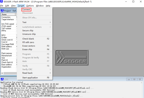 我们点击“Target”—》“Connect”,开始连接目标板: