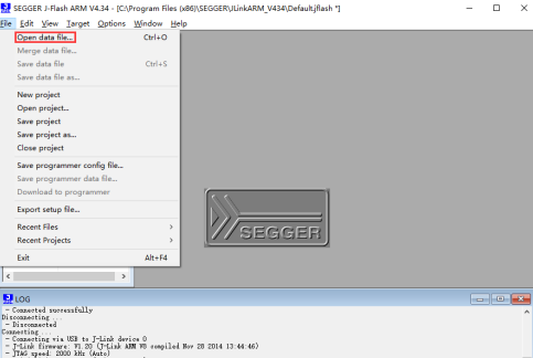 接着,我们在“File”—》“Poen data file”中打开烧录的HEX文件。如图: