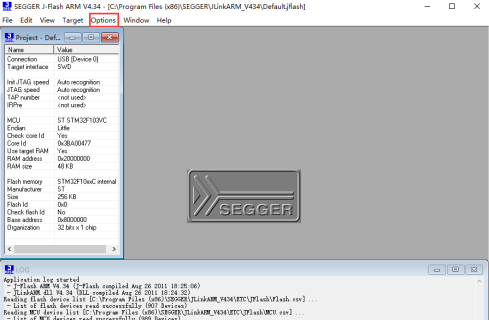 打开“开始”-“所有程序”-SEGGER-JLink ARM v4.14c-J Flash ARM;
