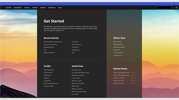 Windows社区工具包是帮助程序扩展程序和自定义控件的集合。 它简化并演示了开发适用于Windows 10的UWP和.NET应用程序的常见开发人员任务。该工具包是.NET Foundation的一部分,可在GitHub上找到。