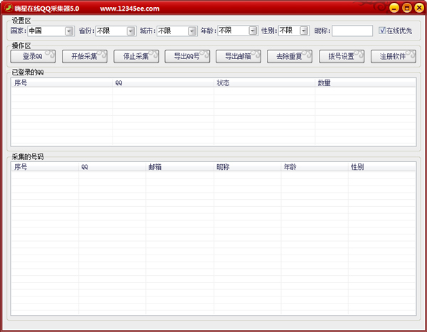 嗨星在线QQ采集器是一款能够采集在线QQ的工具,软件支持根据地区年龄性别以及QQ昵称来采集,可选择采集在线或不在线的QQ,是一款营销推广人员必备的数据采集工具。