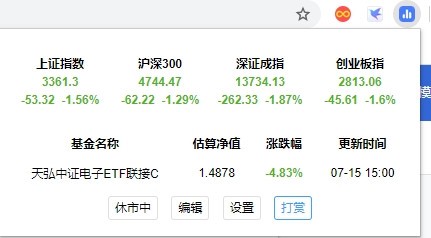 自选基金助手是一款浏览器查看基金涨跌情况的插件,可以帮助用户查看自选基金的实时估值情况,助您快速获取实时数据可以用来查看您的自选基金的实时估值情况,可以自由的增减自选基金。扩展的形式很适合上班族,不用打开网站,仅以小窗口的形式展示,不会引起 BOSS 的注意,方便上班摸鱼。有需要可以下载。