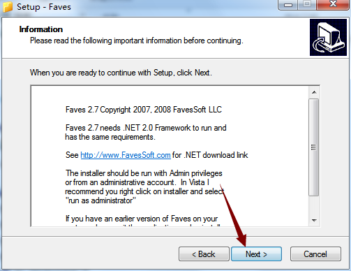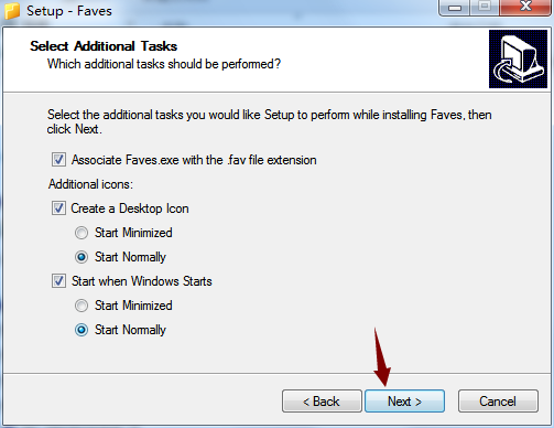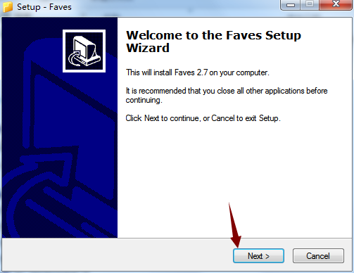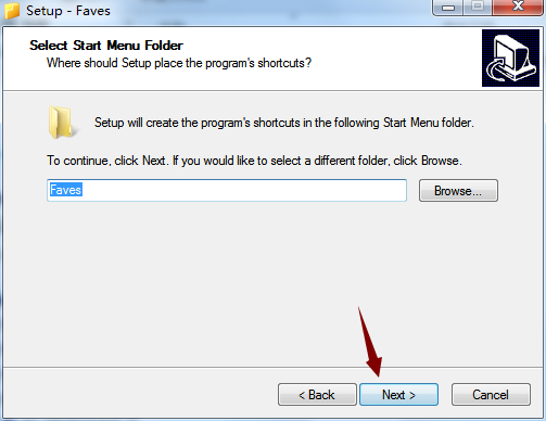 4、对软件的安装文件夹选择,默认文件夹“Faves”,点击Next。