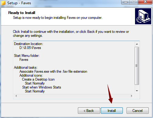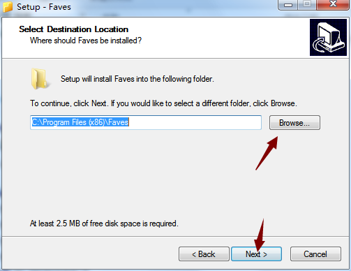 3、选择软件的安装路径,默认“C:Program Files (x86)Faves”,建议安装在不会对电脑C盘有影响的磁盘上,点击Next。
