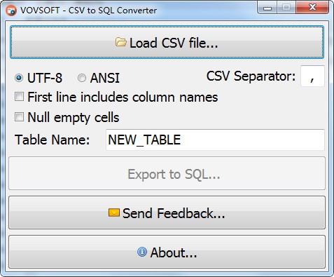 此应用程序将允许您对单个文件执行快速CSV到SQL的转换,而无需任何特殊的配置或高级知识。但是,不利的一面是,该应用程序整体上缺乏简单性,例如缺少批处理等高级功能,这些功能可能非常有用。