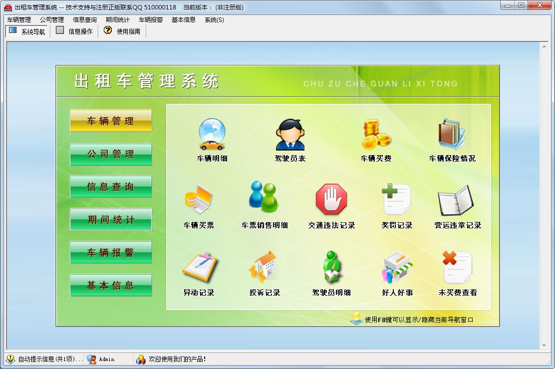 出租车管理系统是一套小而全的管理软件,能够实现对车辆、驾驶员、车辆买费等信息的管理。