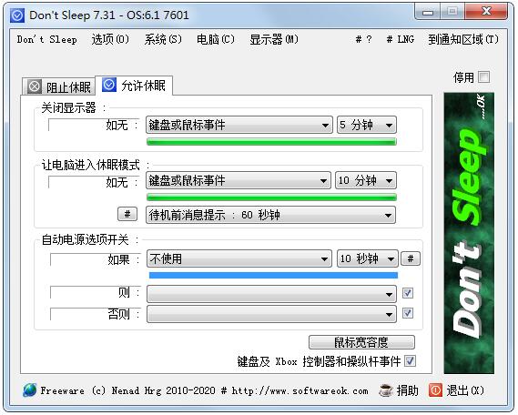 现在向大家推荐一款小软件,Don‘t Slee是一款小巧的便携软件,从它的名字上大家可以猜出他的作用,用来防止系统关机、待机休眠和重启。