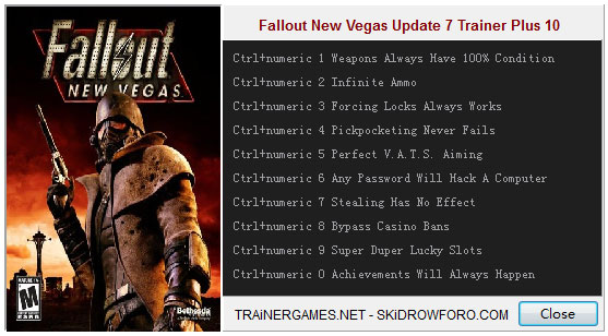 辐射新维加斯十项修改器包含了武器无限耐久、强制锁始终开启、偷窃永不失手、精确VATS瞄准等功能,有兴趣的朋友欢迎下载体验。