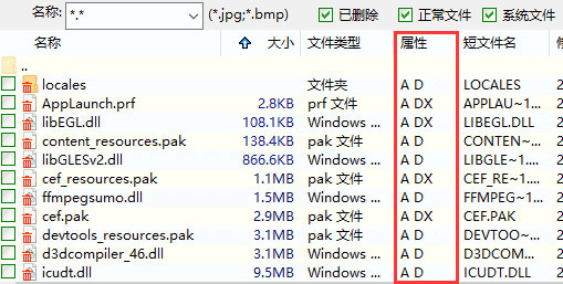 在恢复文件的状态下,文件列表中的“属性”栏将给已删除文件增加两个标记“D”和“X”。“D”表示这是一个已删除的文件。“X”表示这个文件的数据可能已被部分或全部覆盖,文件数据完全恢复的可能性较小。