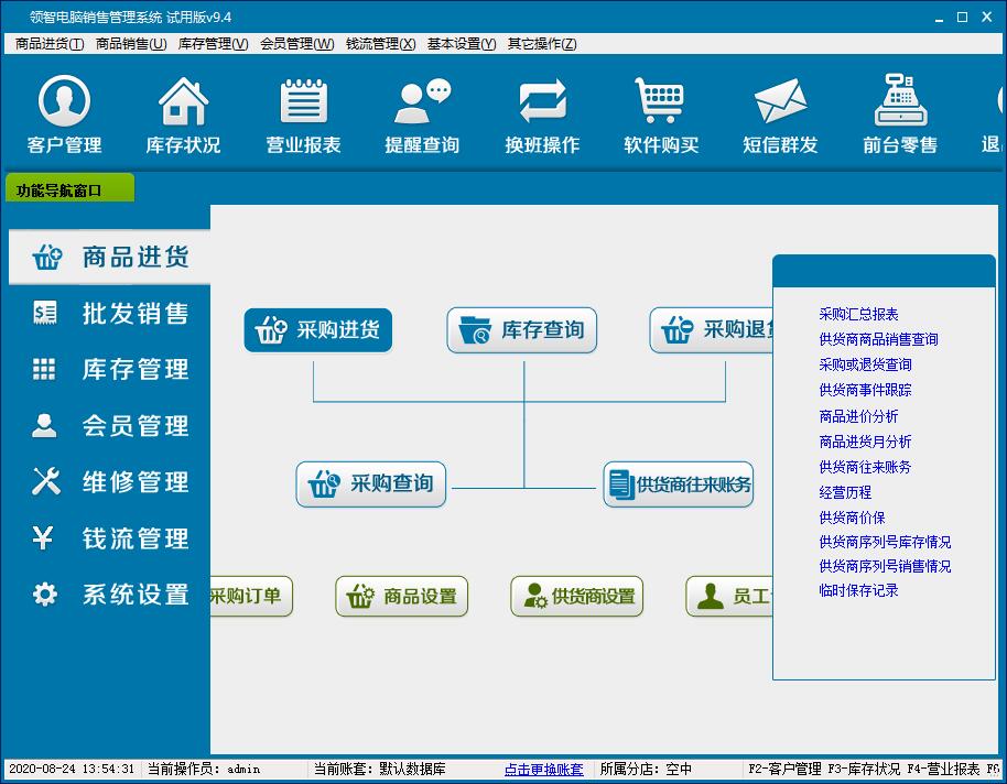 7、连锁店管理:可以通过互联网进行连锁店管理,总店可以实时查询到分店的库存、销售、财务等信息。