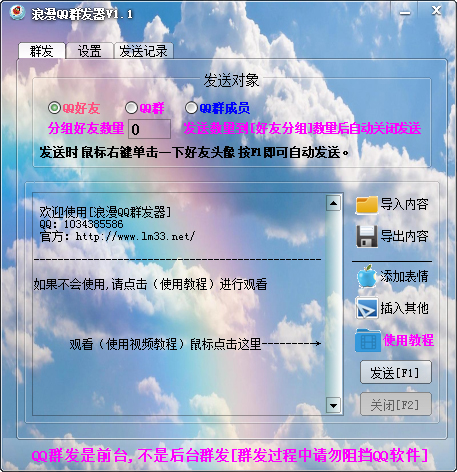 浪漫qq群发器功能特点: