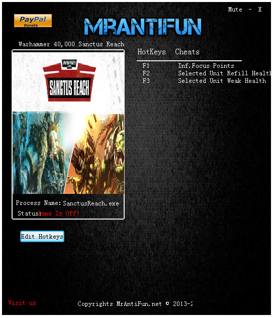 战锤40K神圣军团三项修改器是更具同名游戏制作的修改器,拥有无限焦点,超级生命,虚弱生命等功能,需要的快来下载使用吧!