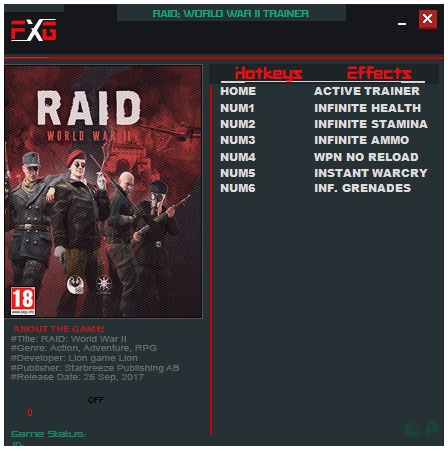 突袭二战六项修改器是一款由FutureX制作分享的突袭二战修改器,由无限健康,无限耐力,无限弹药等6项修改功能,需要的玩家们赶紧来下载吧。