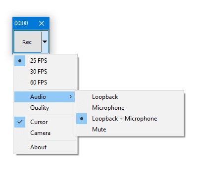 选项从扬声器(环回)、麦克风、扬声器和麦克风的混合以及静音捕获音频