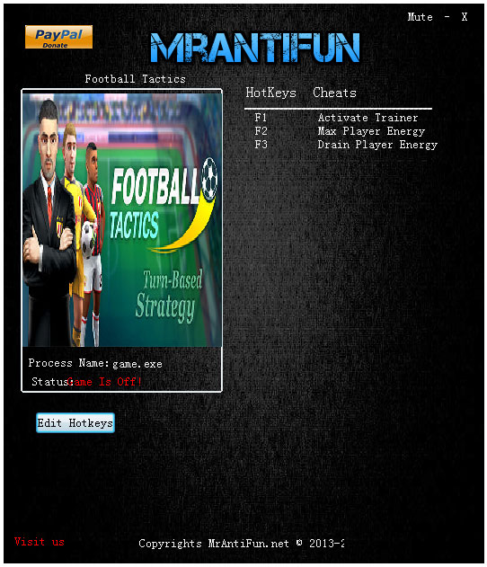 足球战术两项修改器是一款专门为玩家而制作的足球战术修改工具。具备最大球员能量,耗光球员能量等两项Football Tactics修改器功能。欢迎有兴趣的朋友前来下载使用!