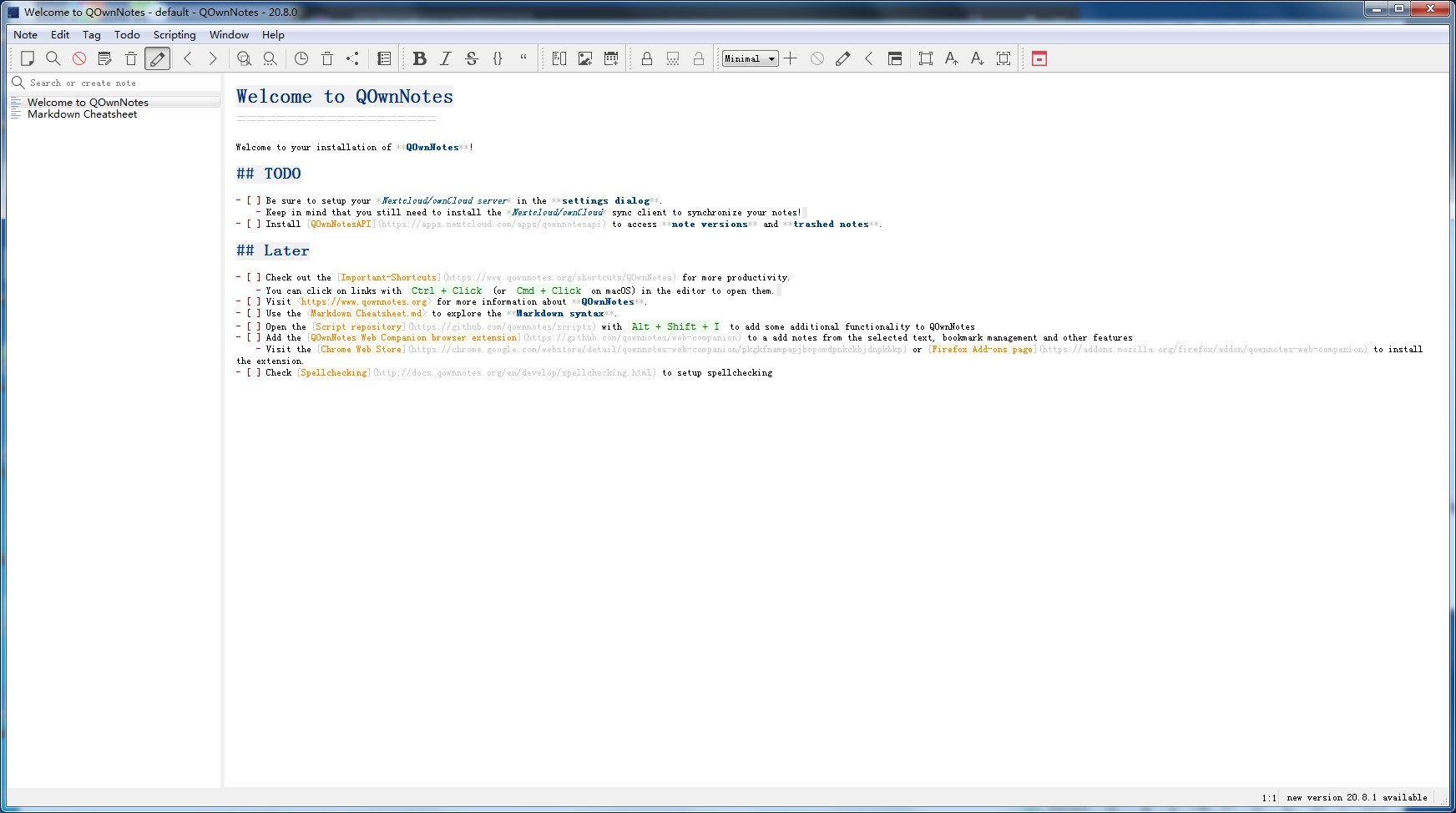 qownnotes是一款自由而开源的笔记记录和待办事项的应用,qownnotes的功能非常强大,界面简洁明晰、操作方便快捷,非常实用。该软件可以将你的笔记保存为纯文本文件,它支持Markdown,并与ownCloud云服务紧密集成。