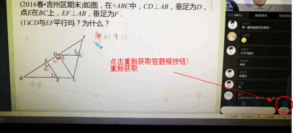 点击直播界面右下角重新获取答题框的按钮即可。