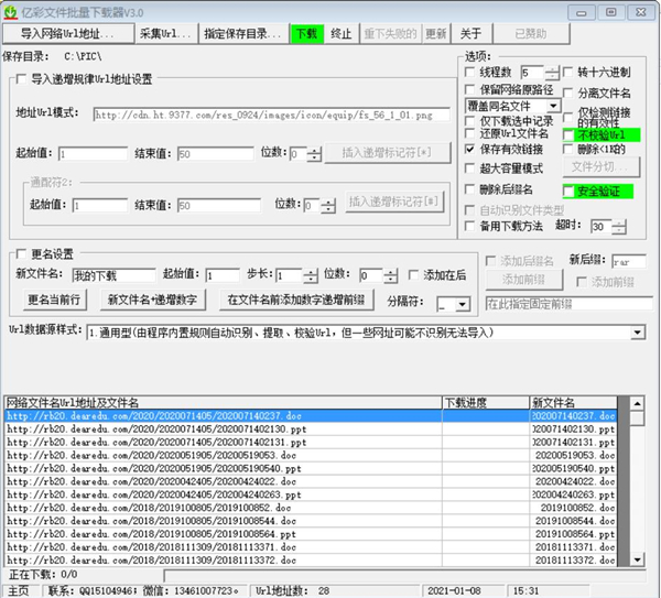 网络文件的Url地址可以保存在文本文件中,也可以保存在Excel表格中,程序将自动导入合法的Url入下载列表,然后可以单线程或者多线程自动下载,还可根据需要自动更名下载的后文件,同名文件可覆盖或者自动更名等。也可以自动采集Url之后再行下载。