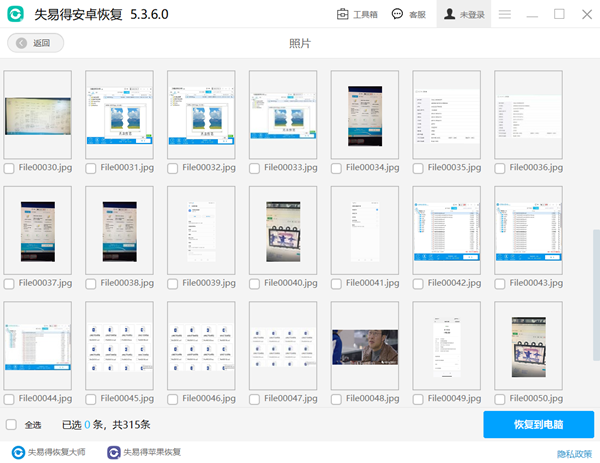预览扫描到的文件,并选择要恢复的文件,点击“恢复到电脑”按钮。