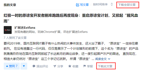 然后你就可以看到新的文章下载选项了,点击即可开始下载。