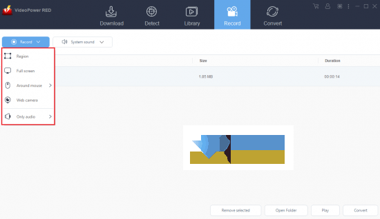 从桌面屏幕上记录活动,指定区域,全屏,应用程序窗口,或者仅记录计算机的网络摄像头以及系统声音和麦克风。