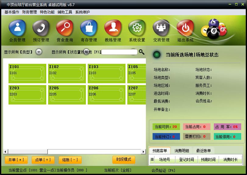 适用于台球厅,羽毛球馆,乒乓球馆,网球场,篮球场,等体育场馆管理信息化理想的管理软件。