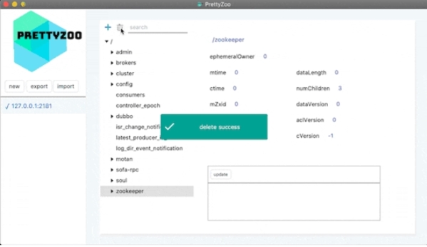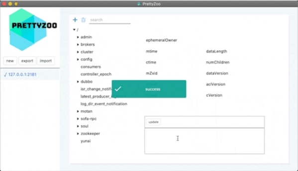 PrettyZoo是一款专业的服务器图形化管理工具,这款软件是专门为zookeeper服务器制作的,软件功能强大,可以随时查看服务器的数据。具有自动同步节点数据、支持递归添加/删除节点、支持节点搜索、支持SSH隧道等功能。